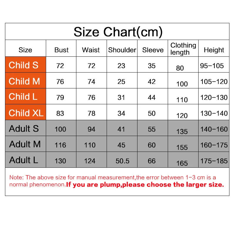 Note: The above size for manual measurement,the error between 1-3 cm is a normal phenomenon. |