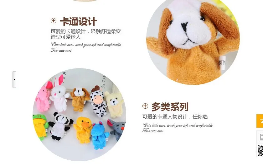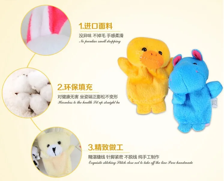 Free Shipping high quality Baby toy 10 pcs Animal Finger Puppet Plush Toys Cartoon Biological Child Baby For Birthday Gift
